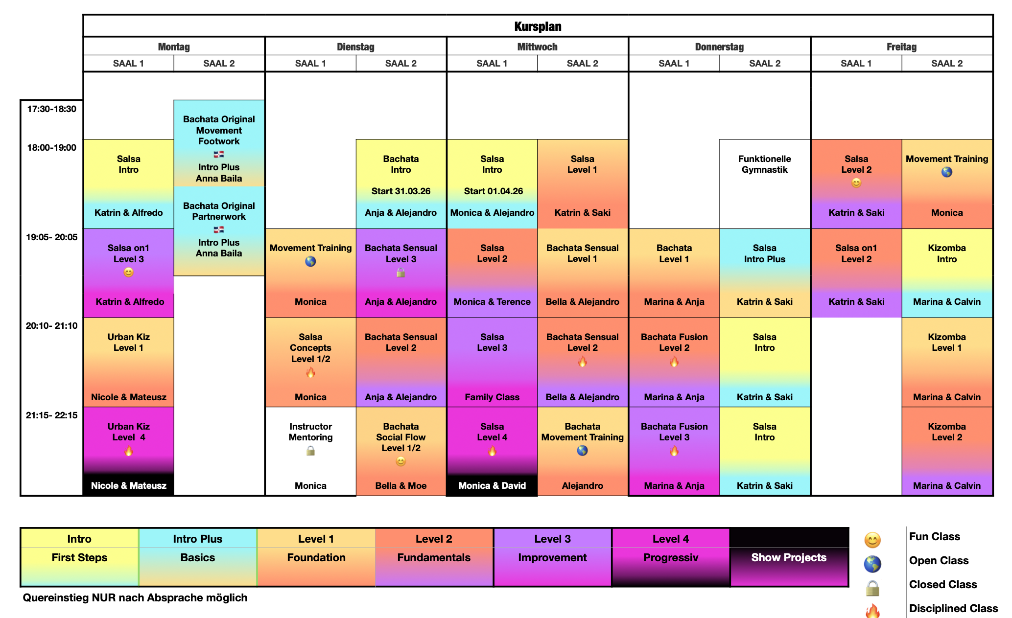 Wichtig: Jede Teilnahme an den Kurs muss vorab mit dem Tanztrainer abgesprochen werden.