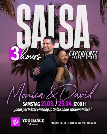 In diesen 3 Stunden machst du deine Salsa First Steps.